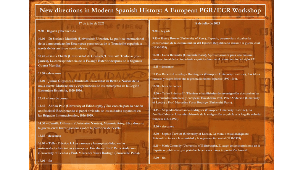 7 de febrero de 2024, 15h GMT: Taller Virtual ‘Historiadoras jóvenes de España en Alemania’ con Anna Catharina Hofmann (Halle) y Katharina Seibert (Tübingen). Enlace: https://ahc.leeds.ac.uk/history/events/event/2935/historiadoras-j-venes-de-espa-a-en-alemania-early-career-historians-of-spain-in-germany